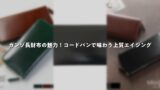 本革は自然な風合いが魅力で、サフィアーノレザーは型押し加工で耐久性が高いです。シュリンクレザーは柔らかく手に馴染みます。小銭入れはL字ジップやがま口タイプが開閉しやすく、カードポケットは10枚以上あると便利。薄型設計はバッグの負担を減らし、かぶせ蓋はホコリを防ぎます。これらのポイントを押さえると、長く使える財布になります。